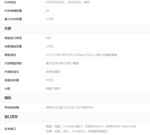 戴尔易安信PowerEdge R640 机架式服务器(Xeon Bronze 3204/16GB/1.2TB*2)